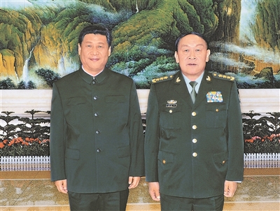 2012年10月15日,习近平同志在八一大楼与梁光烈同志合影留念。 |