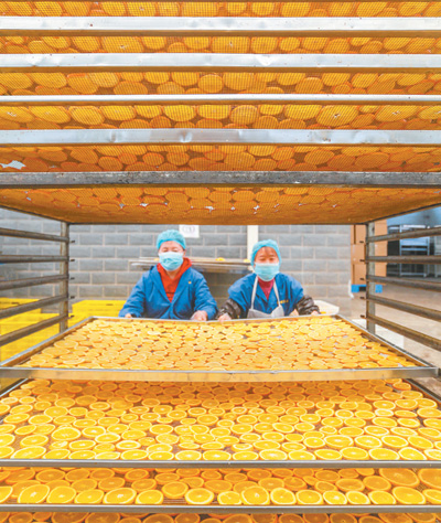 湖北省秭归县一家民营药企,工人在车间制作橙片。 王 罡摄(影像中国)