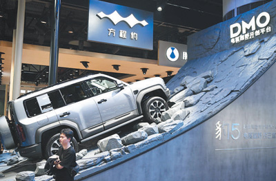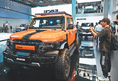 车展上亮相的方程豹新能源越野车。 |