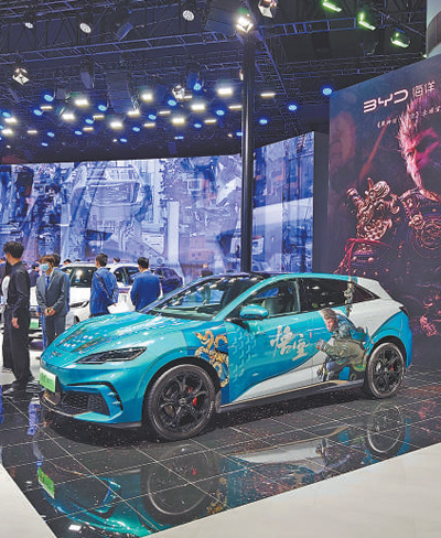 在比亚迪展台上展出的新能源汽车。 |