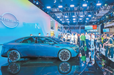 车展上,东风日产发布的纯电动汽车。 |