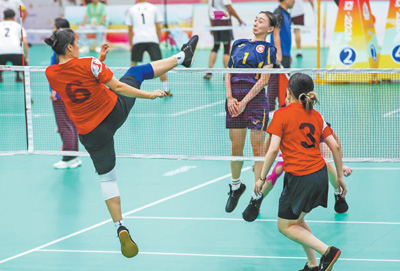 “好球!”“漂亮!”11月24日,海南三亚,第十二届全国少数民族传统体育运动会毽球项目比赛正酣。头球、倒钩球……激烈的回合、精彩的比拼,引来观众连连叫好。