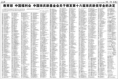 教育部 中国福利会 中国宋庆龄基金会关于颁发第十六届宋庆龄奖学金的决定