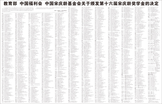 为了全面贯彻党的教育方针,落实立德树人根本任务,培育和践行社会主义核心价值观,加强和改进未成年人思想道德建设,大力弘扬宋庆龄的崇高精神,为中小学生树立可亲、可信、可学的榜样,经地方各级教育行政部门推荐,宋庆龄奖学金办公室严格评审,教育部、中国福利会和中国宋庆龄基金会决定向马子墨等1542名学生颁发第十六届宋庆龄奖学金,向河北省教育厅基础教育处等5家省级教育行政部门颁发第十六届宋庆龄奖学金优秀组织奖。