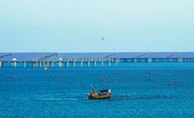 前不久,我国首个百万千瓦级海上光伏项目——国家能源集团山东垦利100万千瓦海上光伏项目首批发电单元正式并网,为海上光伏产业规模化发展起到了引领和示范作用。相较于传统陆上或滩涂光伏项目,这一项目所使用的光伏板是双面的,不仅可以获取来自上方的光能,还可以获取海面反射的光,每块光伏板的发电量增加3%左右。