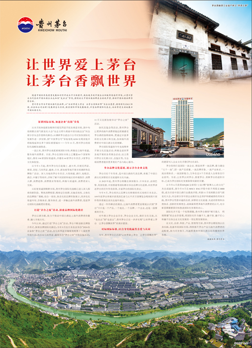 今年,贵州茅台正式将“让世界爱上茅台 让茅台香飘世界”的愿景写入企业文化手册《茅台玖章》。