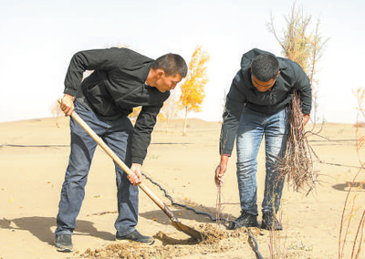 民丰县群众种植红柳。 |