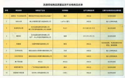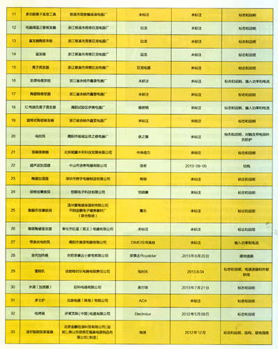 在2013年商品质量监测工作中,北京市工商局对北京市场上销售的小家电类商品进行了质量监测。监测结果显示市场上部分小家电类商品质量存在问题,涉及的主要问题为标志和说明、输入功率和电流、接地措施、对触及带电部件的防护等项目不符合相关标准要求。本次公示的不合格商品生产企业和有关经销单位应按照相关法律法规的要求主动采取召回、下架、退市等措施,保护消费者合法权益。