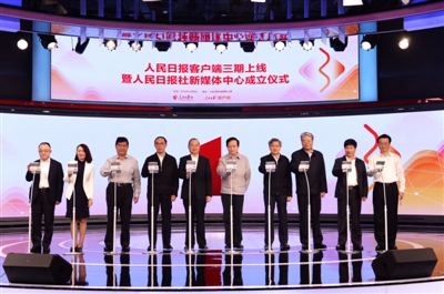 10月8日,人民日报客户端三期上线暨人民日报社新媒体中心成立仪式在京举行。人民日报社社长杨振武、人民日报社总编辑李宝善等社领导出席了成立仪式。杨振武在仪式上宣布,经报中央编办批准,人民日报社新媒体中心正式成立,这标志着人民日报社在加快推动媒体融合发展方面迈出了新的步伐。人民日报报社将优化新媒体发展规划,完善新媒体发展布局,在全力支持办好人民网的同时,切实加快各类新媒体发展,努力形成以人民日报客户端为核心的移动传播新格局。