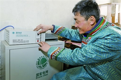 “以前风力发电的时候看不了电视,手机也没法充电,现在风光互补发电之后很方便了,冰柜能冷冻食品,电饭锅能做热乎饭,真是太好了。” 吴六十九的妻子诺恩吉雅说。