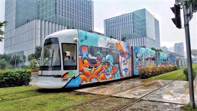5月4日,中德日艺术家涂鸦专列正式亮相羊城。本辆涂鸦专列是2016年初涂鸦列车的升级版,由10位来自不同领域的艺术家共同完成,汇集了各式各样的艺术元素,如逼真的人脸涂鸦、国际化的嘻哈文化。据广州有轨电车公司表示,未来将有更多的艺术文化活动在有轨电车沿线及车辆段开展,为广州市民打造一个开放性的艺术文化空间。