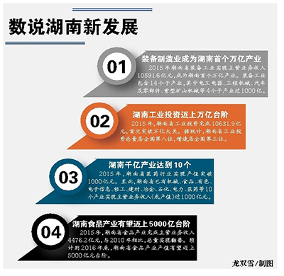 近年来,湖南省委、省政府坚持新型工业化第一推动力不动摇,加快推进结构调整、转型升级和实现跨越式发展,出台了制造强省五年行动计划和“互联网+”的三年行动计划,以及支持移动互联网、住宅产业化、新能源、环保、旅游、建行服务等重点产业发展政策,促进了传统优势产业和新兴产业加快发展,湖南省工业发展实现了新的跨越,工业整体运行质量连续四年位居中部六省第一位,湖南正在由制造大省向制造强省大踏步迈进。