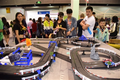 展会中的意念赛车模型引围观。 通讯员 毛旭倩 |