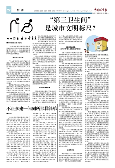 对于公共部门而言,建造怎样的公共厕所反映了对于人的尊严的认可程度和公共服务的精细化水平,体现着一个国家的软实力和文明程度。对于个体来说,如厕往往能够最真实地衡量出国民素质。普及第三卫生间,在提升人们如厕体验的同时,也有利于培养文明如厕的习惯。配备“第三卫生间”看似小事,却绝不是小事,这样的“小事”越多越好。普及“第三卫生间”也不只是多建一个厕所那么简单,它暗含的是,社会对如厕公众的尊重。尊重每一个个体的吃喝拉撒,让每一个人都能活得更体面从容,这是现代治理文明的精神。