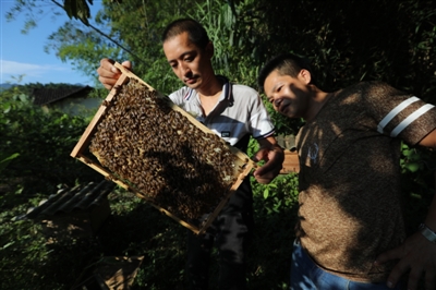 两年前,贺毅了解到贫困户李康祥有养蜂的想法,为了评估项目可行性,他们共同上网学习各种养蜂知识、挑选适合的生产工具,并由此逐步打开蜜蜂养殖业务。