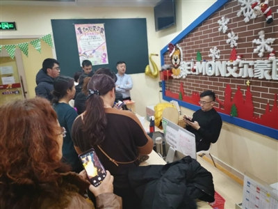 1月19日下午,位于北京市西城区马连道南街的艾尔蒙国际早教门口涌入近百名家长。大家情绪激动地围住负责人讨要说法。
