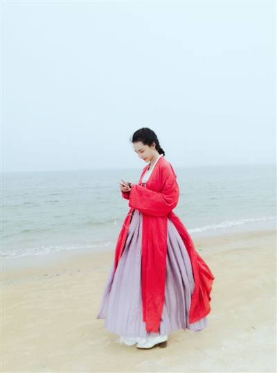于是,狐周周开始接触并逐渐痴迷于汉服。在业余生活中,狐周周总会穿着各式各样的汉服外出活动。“汉服的衣服大多不用扣子,而用绳带系结。依着如此特性,古人在身着汉服时,走起路来自然会潇洒飘逸,轻挥衣袖,便带起一阵清风,似乎全身上下写满浪漫。”狐周周说。