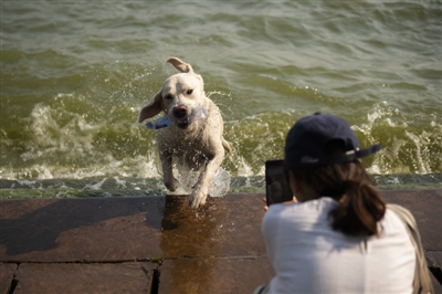近日,在云南省昆明市海埂公园,一只贪玩的拉布拉多犬被冲上岸的滇池浪花吸引住了,勇敢地跳入水中,和滇池来一场亲密互动,引来游人围观。不过,滇池管理局工作人员表示,这是一种不文明的行为,会对滇池水体造成污染。希望网友能管好宠物,一起助力滇池保护工作。