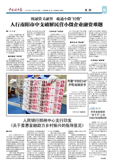 人行南阳市中支从扩大信贷增量和优化信贷存量两方面入手,引导金融机构支持民营小微企业等实体经济发展。
