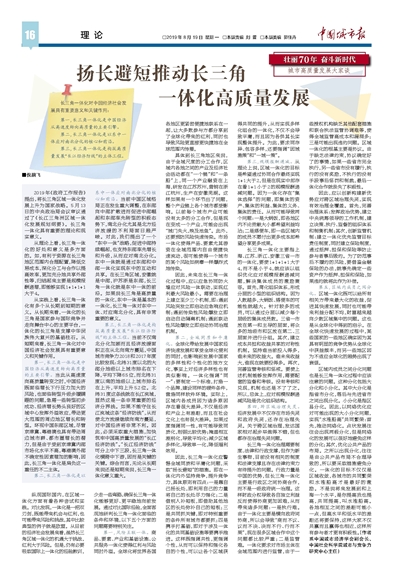 扬长避短推动长三角一体化高质量发展
