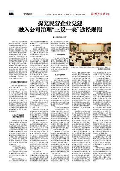 探究民营企业党建 融入公司治理“三议一表”途径规则