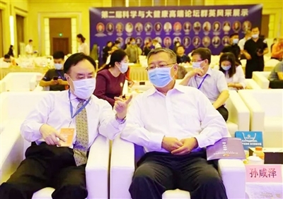 全国人大代表、中国工程院院士樊代明与全国政协委员、中国药学会会长孙咸泽(右)在本届论坛上现场交流。 |
