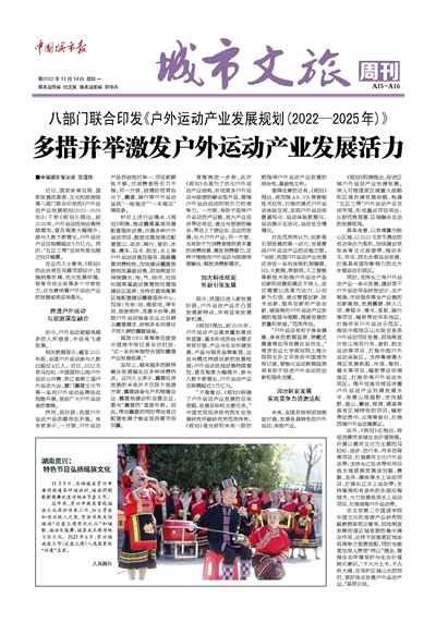 “不难看出,《规划》明确了户外运动产业发展的总体思路、发展目标和主要任务。”中国宏观经济研究院社会发展研究所副研究员范宪伟称,《规划》是当前和未来一段时期指导户外运动产业发展的综合性、基础性文件。
