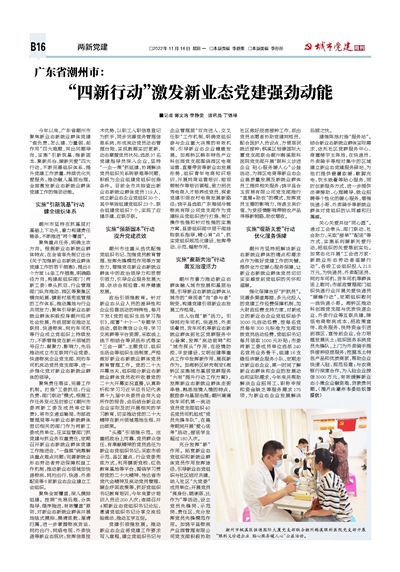 潮州市注重从选优配强党组织书记、加强党员教育管理、发挥先锋模范作用等方面发力,增强党在新业态新就业群体中的政治领导力和思想引领力,引导企业服务发展大局、依法合规经营、有序健康发展。