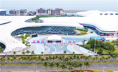 第三届中国国际消费品博览会于4月10日至15日在海南省海口市举办。本届消博会展览总面积约12万平方米,共有来自65个国家和地区的超过3100个消费精品品牌参展。图为海南国际会展中心。