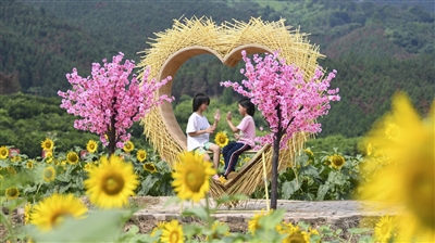 近年来,湖南省常宁市洋泉镇巷坪村坚持党建引领,大力发展特色优质高效农业,通过种植向日葵、湘莲、茶叶、蘑菇等特色作物,打造集生产、生态、观光于一体的“美丽经济”产业带,吸引不少游客前来观光游玩,实现经济效益与生态效益有机统一,助推农业增产、农民增收。