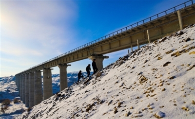 乌鲁木齐铁路局奎屯公安处民警在铁路沿线高海拔地区开展重点部位安全大检查,确保铁路列车安全通行。