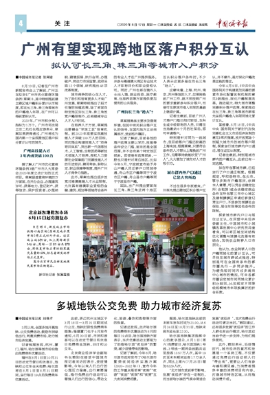 今年4月9日,《中共中央国务院关于构建更加完善的要素市场化配置体制机制的意见》就提出,深化户籍制度改革。推动超大、特大城市调整完善积分落户政策,探索推动在长三角、珠三角等城市群率先实现户籍准入年限同城化累计互认。