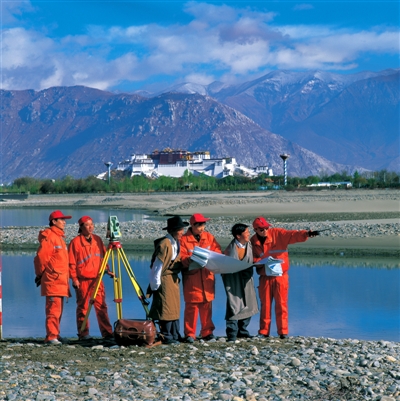 原瑞伦的作品中也不乏具有时代印记的知名作品。比如,2001年4月,青藏铁路开始勘察设计时,原瑞伦是第一个到现场拍摄工程技术人员勘察的摄影记者,他拍的《勘察青藏铁路》被国家邮政局设计成邮票(小型张)并获奖。