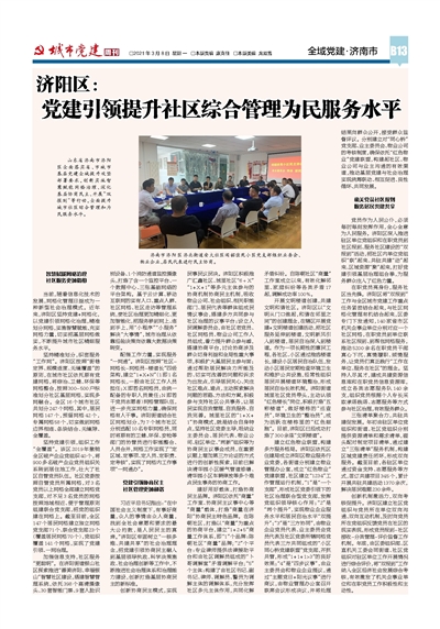 山东省济南市济阳区全面落实省、市城市基层党建全域提升攻坚部署要求,创新实施智慧赋能网格治理、深化基层协商民主、开展“双报到”等行动,全面提升城市社区综合管理和为民服务水平。
