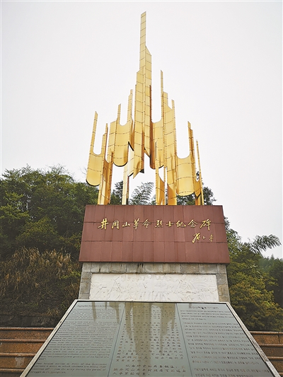 从井冈山革命烈士陵园拾级而上,“井冈山根据地革命先烈永垂不朽”几个大字赫然出现在眼前。山顶上,井冈山革命烈士纪念碑静静矗立着,如林立的钢枪、燃烧的火焰,既寓意井冈山的“星星之火,可以燎原”,又寓意“枪杆子里面出政权”。纪念碑主碑高达27米,意含1927年毛泽东等老一辈无产阶级革命家创建了党领导下的第一个农村革命根据地——井冈山革命根据地。