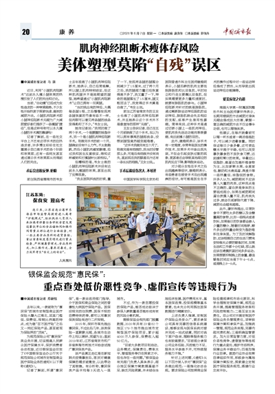她向记者说:“我同时做了两个手术,一个是腰腹的抽脂手术,另一个是小腿肌肉神经阻断手术。刚做完手术的前一个月,腿确实没有什么力气,不太敢跑跳,然后小腿肌肉感觉酸痛,经过我和医生反复核实,得知这种感觉和打瘦腿针比较相似。”