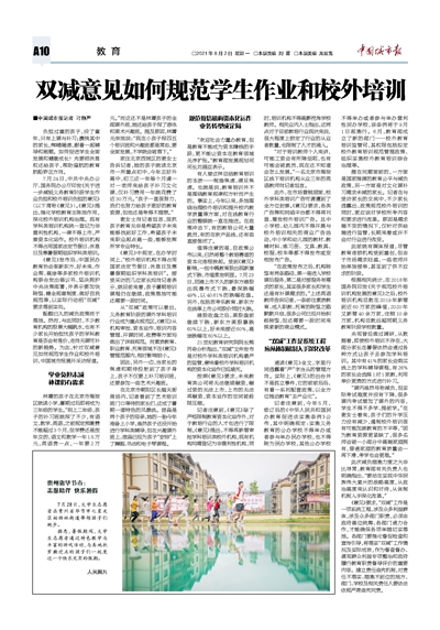 酝酿已久的减负政策终于落地。然而,与此同时,不少教育机构的股票大幅跳水,也有不少家长开始担忧孩子的学科教育是否会有涨价,走向无课可补的新趋势。为此,针对双减意见如何规范学生作业和校外培训,中国城市报展开采访报道。