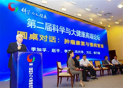 在第二届科学与大健康高端论坛的“肿瘤康复与慢病管理”圆桌对话中,国医大师李佃贵,国家名老中医冯兴华,肿瘤疾病专家季加孚、赵平、李澍,业界代表万江、杨子超等就肿瘤防治热点话题进行了现场对话,共同探讨肿瘤的科学防与治。