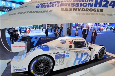 第四届中国国际进口博览会于11月5日至10日在国家会展中心(上海)举办,来自世界各地的品牌和企业汇聚一堂。图为11月5月,观众在第四届进博会上参观“零碳排出行”氢能源驱动赛车。