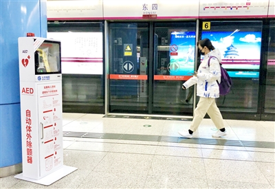 近日,北京地铁300余座车站已实现AED(自动体外除颤器)设备全覆盖,保障乘客安全、健康出行。截至目前,我国一线城市中,北京、广州、深圳均已实现地铁AED全覆盖,上海今年内也将完成地铁AED全覆盖工作。图为乘客在北京地铁东四站自动体外除颤器设备前走过。