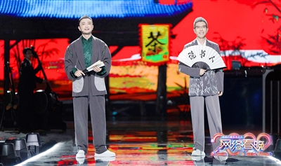 朱广权和尼格买提在总台2022网络春晚上表演《说书人》。 |