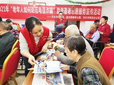 安徽省天长市社区网格员面向老年居民开展反电信诈骗宣传活动。沈书琴摄 |