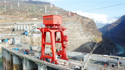 近日,白鹤滩水电站坝顶门机通过负荷试验,标志着全球水电行业单钩起重量最大的门机具备投运条件。白鹤滩水电站坝顶门机为双向斜拉门式启闭机,起重量为10000千牛/500千牛,布置于坝顶836高程上,其中主钩起重量为10000千牛,为目前全球水电行业单钩起重量之最。 |