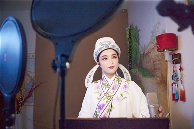 越剧演员陈誉在抖音平台直播。抖音供图 |