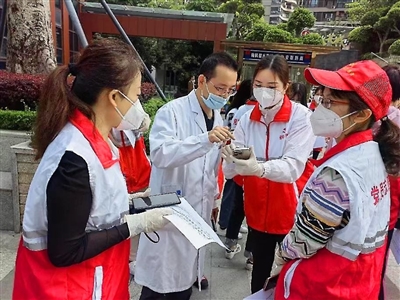 韶关市武江区社区“大党委”成员单位志愿者参与社区疫情防控工作。 |