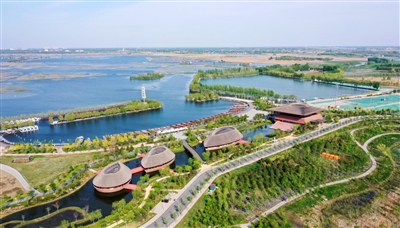 记者9月9日从河北雄安新区管理委员会获悉,雄安新区自设立以来,累计完成投资逾4600亿元。雄安新区生态环境显著改善,已累计造林46.9万亩,白洋淀淀区面积恢复至约293平方公里。图为航拍雄安新区白洋淀景色。