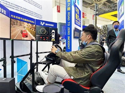 展馆内,互动区设置的未来智能交通出行体验设备吸引了记者的注意,通过“侃车”直播间与现场展示台,消费者能够与智能网联汽车最新技术进行互动,行业主播、汽车厂商更是现场“带货”,推动专业化与消费落地的紧密对接。