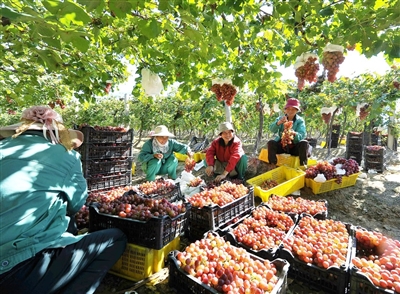 河南省新乡市新乡县七里营镇龙泉苑葡萄喜获丰收。谢静摄 |