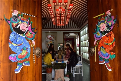 四川绵竹年画村里,年画作坊艺人在交流年画绘制技艺。 |
