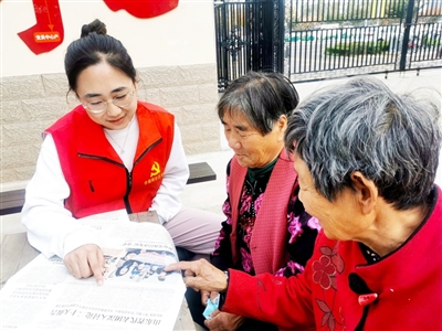 潍坊市潍城区南关街道党员志愿者向群众宣讲党的二十大精神。 |